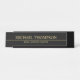 Faça sua empresa parecer mais profissional com um elegante prato preto e dourado. Esta placa de nome da mesa apresenta o nome e o título no estilo de fonte de serif profissional ouro com linha dourada no meio sobre fundo preto. Perfeito para agente imobiliário, consultor, contabilista e muitas outras profissões. Nota: Os detalhes da folha são simulados no trabalho de arte. Não será utilizada nenhuma folha de alumínio real no fazer deste produto.