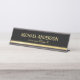 Placa de identificação do Elegante profissional preto e da mesa Dourada com o nome no estilo de fonte sans serif e profissão do estilo de fonte do script moderno do ouro, com borda de ouro inferior, em fundo preto. Perfeito para um agente imobiliário, designer, advogado, consultor e muitas outras profissões. Nota: Os detalhes da folha são simulados no trabalho de arte. Este produto não contém detalhes em papel laminado.