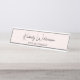 Placa de nome de mesa rosa profissional e elegante com seu nome apresentado em um script de assinatura de chic e sua empresa ou título em caracteres simples.