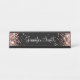 Brilhante rosa dourado cintilante brilhante nas bordas laterais sobre um fundo preto de cor sólida As cores principais são cor-de-rosa, pincel, rosa dourado, preto e branco. Placa de nome personalizada com um estilo elegante de script moderno. O estilo e o tamanho da fonte podem ser alterados, se necessário.