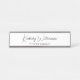 Placa branca de identificação profissional e elegante com o seu nome, apresentada num script de assinatura química e na sua empresa ou título em simples inscrições modernas.