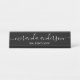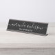 Faça sua empresa parecer mais profissional com um roteiro moderno, preto e branco, com o nome da mesa. Esta placa de nome da mesa apresenta o nome no estilo de fonte branco moderno do script e o título no estilo de fonte branco do sans moderno em fundo preto. Perfeito para agente imobiliário, consultor, contabilista e muitas outras profissões.