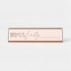 Personalize e decore o seu espaço de trabalho e dê a conhecer quem você é com a nossa divertida, na moda e moderna placa de nome personalizado da mesa "Senhora Chefe". O design apresenta um fundo de luz na moda com "Senhora Chefe" desenhado em um script de pincel de ouro falso de tendência e tipografia de san serif com um coração de na moda substituindo a letra "o" e personalizado com seu "também sabe como"... seu nome.