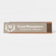 Amor tudo casa da quinta? Obtenha que procura seu escritório! Esta placa de identificação mostrada em silhueta os antlers da mesa do monograma dos cervos do branco caracteriza um fundo do impressão de serapilheira do falso mais seus nome e ocupação personalizados.
