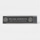 Design de tema de engenheiro com um par de círculos em extremidades opostas da placa de nome com engrenagens expostas. É uma escolha excelente para engenheiros, cientistas, mecânica, inventores e técnicos de todos os tipos. O modelo de texto tem espaço alocado para seu nome e título ou outro texto desejado.