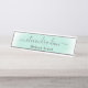 design de placa de nome de na moda com letra verde pastel mint e caligrafia elegante.