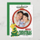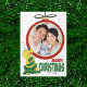 Mande um sorriso gigante para o rosto de qualquer um com este cartão engraçado e fofo de Natal, modelo de foto da família. Toda trabalho de arte é desenhada à mão. Sua foto de família é parte de um Enfeites de natal retrô, vermelho e ouro. No canto inferior esquerdo está um laboratório amarelo muito feliz, pateta, vestido como árvore de Natal. Na parte inferior direita está o texto "Feliz Natal". Por baixo, você pode personalizar o texto para seu nome. O verso é deixado com uma cor verde sólida. Este é um cartão de excelente para aqueles que procuram por vibrações retrorreflectoras e de vintagem e será definitivamente um grande sucesso para qualquer amante de animais/cães.