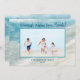 Queijos quentes enviados da Flórida (ou seu lugar de praia favorito)! Saudações para os feriados dos amantes do oceano em todo lugar! Este oceano da costa do Golfo da Flórida faz ondas de praia Cartão de Natal em tons de chá, aqua, e azul-oceano e marinho é caprichoso e perfeito para um Natal tropical ou para compartilhar memórias de férias. Adicione sua foto e ela aparecerá magicamente no quadro! Apenas personalize o nome da família, o lugar favorito e o ano, e você tem seu próprio cartão de Natal ou Chanucá personalizado!