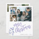 Na moda moderno Merry Christmas pastel roxo lavanda escrita à mão script 6 fotos da família simples cartão de feriado BUDGET branco com o seu texto personalizado em ambos os lados com uma ramificação de bagas sagradas de cor d'água. ++++++++ OBSERVEM que as cores de fundo e de script são editáveis. Você pode alterar qualquer um deles depois de selecionar a opção PERSONALIZAR abaixo do menu PERSONALIZAR TI. Se você não se sentir à vontade mudando-o, peça ajuda ao Zazzle Live Design ou ao designer. ++++++++++++++++++++++++++, LEIA ISTO ANTES DE COMPRAR! Este é um cartão de barato de orçamento impresso em uma folha de papel (cada folha tem um cartão). +++ Para obter a melhor qualidade de preço, nosso conselho é escolher o tipo de papel Semi-Gloss (é espesso o suficiente para ser usado para papelaria) +++ Se você precisar de envelopes, escolha a OPÇÃO ENVELOPE. ++ Verifique duas vezes todas as informações e a ortografia do seu texto porque você receberá exatamente o que você vê - ninguém mais verificará nada antes de imprimir. +++ Esta placa foi projetada para o tamanho de 4,5" x 5,6". Caso você escolha outro tamanho do cartão e o texto saia da página, tudo precisa ser corrigido antes de adicionar o produto ao carrinho. Peça ajuda ao Serviço de Design ao Vivo.