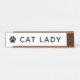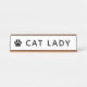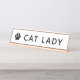 Placa de nome da mesa preto e branco clássico, "Senhora Gata", com destaque para impressão de pata. Pode ser totalmente personalizado com seu texto e cores personalizados.