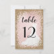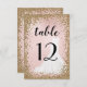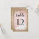 Um quadro brilhante de ouro rosa (faux) brilhante é espalhado por toda a parte com um efeito texturado fundo cor-de-rosa pincelado e nosso exclusivo vestido de noiva de sereia. Perfeito para chás de panela e festas de casamento. Cada número dos cartões de mesa deve ser personalizado primeiro e depois adicionado ao carrinho um a um.
