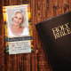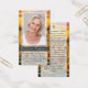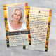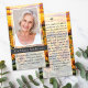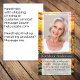 Este cartão poema memorial pode ser entregue como guardião numa Celebração da Vida ou num serviço funerário ou enviado como homenagem especial a quem não pôde estar presente. Este cartão pode ser personalizado com uma foto favorita e sua escolha de oração ou poema. Note que a pessoa representada é usada apenas para fins ilustrativos, substitua a fotografia antes de solicitar.