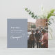 Um design elegante e minimalista que apresenta uma mistura de cinzas de carvão e matizes de marinho profundo, acrescentando um toque de elegância moderna. Na frente, a tipografia da na moda define o palco com as palavras "[Name], se encaixa no meu amigo. Você Será Meu Padrinho de casamento?" Junto com a mensagem personalizada, há uma foto personalizada para compartilhar sua memória favorita.