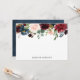 Cartão de papelaria personalizado elegante, com uma borda superior de flores borrifadas, cor-de-rosa-pincel e marinho azul-aquarela, folhas verdes complementadas. O verso da papelaria floral mostra um fundo de cor azul-água marinho. Personalize com seu nome, monograma ou outro texto para um design personalizado.