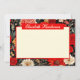 Este cartão de carta horizontal 5x7 personalizável apresenta o seu nome contra uma placa vermelha brilhante, com uma ilustração floral vibrante, dramática, vermelha e creme num fundo escuro