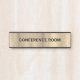 Conference room door sign design featuring a shiny, smooth gold texture background, custom black text.