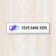 Símbolo infinito com uma bela pena pintada em cores roxas e azuis brilhantes sobre fundo branco.