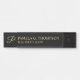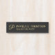 Faça seu negócio parecer mais profissional com uma elegante placa de nome preto e ouro pendurada. Esta placa de nome pendente apresenta um monograma no estilo de fonte de script moderno dourado com nome e título no estilo de fonte de serif profissional ouro em fundo preto. Perfeito para agente imobiliário, consultor, contabilista e muitas outras profissões. Nota: Os detalhes da folha são simulados no trabalho de arte. Não será utilizada nenhuma folha de alumínio real no fazer deste produto.