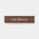 Placa de Nomes Personalizável para Profissionais, Artistas, Empresas mostradas com uma mahagonia escura como textura e impressão branco.