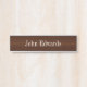 Placa de Nomes Personalizável para Profissionais, Artistas, Empresas mostradas com uma mahagonia escura como textura e impressão branco.