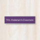 Você pode editar o texto branco neste sinal de porta roxa. (Mostra: sala de aula da Sra. Anderson)