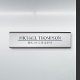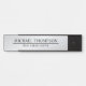 Faça seu negócio parecer mais profissional com uma elegante placa preta e prateada. Este sinal de porta apresenta o nome e a profissão no estilo de fonte de serifa profissional preto com linha preta no meio sobre fundo prateado. Perfeito para agente imobiliário, consultor, contabilista e muitas outras profissões. Nota: Os detalhes da folha são simulados no trabalho de arte. Não será utilizada nenhuma folha de alumínio real no fazer deste produto.