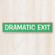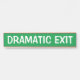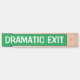 Esta placa engraçada pode ser pendurada na parte de trás das portas da frente, saídas de dormitório, portas deslizantes, auditórios, portas de palco, saídas de sala de aula, portas de escritório e quase em qualquer lugar para fazer seus convidados, estudantes ou atores rirem quando eles saem de sua casa ou escritório. O gráfico diz Saída Dramática em texto branco contra fundo verde. Este impressão é um presente bobo e engraçado para professores de teatro, treinadores em ação, chefes, pais, adolescentes e estudantes universitários.