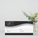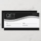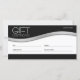 Este cartão-presente da empresa comercial apresenta um design limpo e profissional com cores pretas, brancas e prateadas.