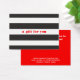 Listras horizontais, pretas e brancas, com destaque para o texto vermelho a negrito. Um cartão de presente de Natal simples e barato para a época de férias. Excelente para profissionais de moda, beleza e varejo.