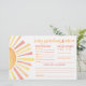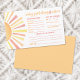 Esta placa horizontal de Predicções e Conselhos para Bebês apresenta um alegre design com temática solar com raios quentes em tons clássicos amarelo, laranja e vermelho, dando-lhe uma vibração ensolarada e divertida. Do lado esquerdo, um sol ousado adiciona um sotaque brilhante, enquanto o lado direito convida os convidados a adivinhar os detalhes de chegada do bebê — como data, hora, peso, olhos e cor de cabelo, e a quem eles se assemelharão. Na parte inferior, há um ponto para os convidados oferecerem um pouco de conselho e assinarem o seu nome, fazer-o um bem-estar doce e pessoal para os futuros pais. A parte traseira apresenta um fundo laranja sólido, mas você pode alterá-lo para qualquer cor para corresponder ao seu tema de chá. Totalmente personalizável e divertido para os convidados, este cartão adiciona um toque atencioso à sua celebração.