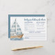 Este cartão horizontal de conselhos e previsões de bebês é projetado com um tema náutico lúdico, perfeito para um chá "Bebê no Conselho" ou qualquer celebração inspirada no oceano. No lado esquerdo, um veleiro clássico, azul e branco, senta-se sobre uma lavagem macia de água a cores, acrescentando um toque suave à beira-mar sem sobrecarregar o layout. À direita, os convidados são convidados a preencher os seus melhores palpites para a chegada do bebê, incluindo data, hora, peso, cor do olho, cor do cabelo, e a quem o bebê se assemelhará. No fundo, há espaço para os hóspedes deixarem um conselho rápido para os pais serem e assinarem o seu nome, criando um bom tesouro para tesouro. A parte traseira apresenta um fundo azul suave, que pode ser alterado para qualquer cor para corresponder ao tema do chá. Totalmente personalizável, este cartão adiciona um pouco de encanto náutico enquanto mantém as coisas simples e atenciosas.