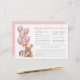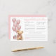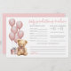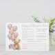 Este cartão horizontal de conselhos e previsões de bebês apresenta um tema de ursos de pelúcia macio e lúdico, perfeito para uma celebração de chá de fraldas doce. O lado esquerdo do cartão mostra uma adorável aquarela que um ursinho de pelúcia vestindo um arco rosa, sentado ao lado de um balão rosa macio e uma pequena caixa de presentes — adicionando um toque encantador e aconchegante ao layout. A paleta de cores usa tons cor-de-rosa e cinzas, com texto em uma mistura de letras escritas à mão e fontes clássicas de serif para um aspecto bonito, mas clássico. O estilo geral é mínimo e elegante, mantendo o foco nas respostas do doce trabalho de arte e convidado. Convidam-se os convidados a preencher as suas predições de bebês — como a data de chegada, a hora, o peso, o cabelo e a cor dos olhos, e a quem o bebê se assemelhará. Na base, há espaço para compartilhar conselhos para os pais serem e assinarem o nome deles. A parte traseira apresenta um fundo cor-de-rosa de coordenação, mas pode ser alterada para qualquer cor para corresponder ao tema do seu partido. Totalmente personalizável, este cartão adiciona um elemento caprichoso e animador ao seu chá de fraldas. É uma combinação perfeita para um tema "Nós podemos esperar mais cedo" ou qualquer celebração inspirada em ursos de pelúcia.