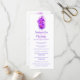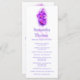 Flor de orquídea de cor aquosa estilizada, pintada de dois lados, com pétalas em forma de coração, em roxo e floral de arte, num programa de casamento branco. Parte do conjunto de papéis de carta de casamentos de orquídeas estilizadas com coloração aquosa de arte. Bonito tom roxo e branco. Edite este programa de casamento com seu próprio nome, datas, texto da cerimônia, assistentes de festa de casamento e obrigados. Um programa simples, mas elegante, simplesmente substitua o texto de amostra por seus detalhes de casamento. Programa moderno e romântico de cerimônias de casamento. Pintura aquosa e design por Sarah Trett.
