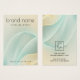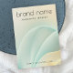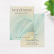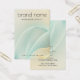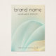 A ouvir a placa de apresentação do produto com a sua marca numa fonte moderna de escrita num fundo com linhas de rotação claras aqua azul e ouro amarela. Texto e logotipo personalizáveis no verso.
