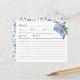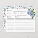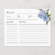 Cartão de receita rústico para o seu chá de panela de tema floral com ilustração aquosa de peônia azul com verde. Peça aos seus hóspedes para preencherem este cartão de receita e levá-los à noiva ou ao chá de casamento. Perfeito para primavera ou chá de verão.