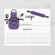 Cartões de receitas de cozinha de retrô divertidos, com um avental de bolinhas roxo com ferramentas de cozinha e pino rolante. A frente do nosso cartão de receita oferece espaço para um título de receita, da cozinha e do espaço de ingredientes. Sacudir nosso cartão de receita para ver nossa linha de volta para as instruções da receita. Visite nosso compro para convites de chá de panela correspondentes Disponíveis em nosso compro em uma grande variedade de cores populares do chá de casamento. Chá de panela perfeito para o estoque do chá de panela da cozinha.