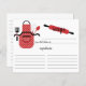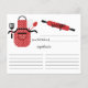 Cartões de receitas de cozinha de retrô divertidos, com um avental de bolinhas vermelha com ferramentas de cozinha e pino rolante. A frente do nosso cartão de receita oferece espaço para um título de receita, da cozinha e do espaço de ingredientes. Sacudir nosso cartão de receita para ver nossa linha de volta para as instruções da receita. Visite nosso compro para convites de chá de panela correspondentes Disponíveis em nosso compro em uma grande variedade de cores populares do chá de casamento. Chá de panela perfeito para o estoque do chá de panela da cozinha.