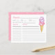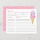 Cartão de receita mimétrico e doce para o seu chá de panela de tema do sorvete com ilustração aquosa de 2 colheres de sorvete em um cone de waffle. Peça aos seus hóspedes para preencherem este cartão de receita e levá-los à noiva ou ao chá de casamento.