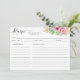 Placa de Folha de Receita de Cozinha Suculente Rosa-Rosa-Cinza Botânica com Aquarela Floral