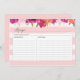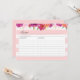 Placa de recebimento com fundo de cor d'água de design floral e listras cor-de-rosa.
