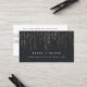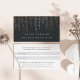 Cartões de referência chic apresentam a sua oferta de referência em letras brancas clássicas em um fundo preto suave e rico com fios verticais de luzes de cordas de folhas rosa douradas falsas em cascata a partir do topo. Adicione seus termos de referência e informações de contato ao lado inverso, com espaço para os nomes de seus clientes.