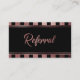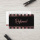 Esta elegante design apresenta uma folha de ouro falso-rosa e sotaques negros. Bordas superiores e inferiores de uma faixa vertical em negrito aparecem acima e abaixo de uma grande banda preta através do centro, que é bordada em tiras de ouro de rosa duplo. No centro do crachá, usando uma bonito e moderna fonte de escrita, está uma camada gráfica tipográfica que diz "Referência". Esta camada de texto gráfico foi embelezada com o mesmo efeito rosa ouro que usei nas listras e bordas. No verso, eu configuro todos os campos de modelo que você precisará para oferecer os detalhes e os termos aos seus clientes. Use os campos modelo para adicionar seus próprios detalhes e fazer as mudanças de texto necessárias. Você também pode clicar para personalizar ainda mais se quiser alterar fontes, tamanhos ou posições de quaisquer elementos. // Ideal para proprietários de salões, cabeleireiros, esteticistas, manicuristas e técnicos de unhas, maquiadores, terapeutas de massagem, treinadores pessoais, treinadores e muitos outros em indústrias de curandeiros e serviços pessoais que apreciam honrar referências comerciais. // Por favor, não hesite em contactar se tiver pedidos especiais ou necessitar de assistência personalizada. // Concebida por Melody Watson para Paper Muserie.