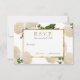Este cartão de resposta romântico de casamento apresenta um padrão de crisântemos ilustrados pela safra e uma falsa borda de sotaque de folha de ouro. Os convites correspondentes estão disponíveis.