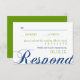 A elegante caligrafia azul-marinho se destaca e é elogiada pelo Verde limão - moderno e moderno. Personalize o estilo e a cor do papel, bem como as fontes e cores das informações de noiva, noivo e cerimônia. Mostrado abaixo em Básico e Champanhe