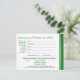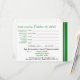 Placa de resposta de design de informações da faixa verde Varsity. Cartão de informação de Reunião de Classe e resposta para corresponder ao nosso convite.
