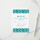 Com um padrão trendy teal triangle multicanal, este Cartão de Resposta Geométrico Triangles é um excelente para um casamento moderno. Este simples convite é fácil de personalizar com as suas informações de casamento.