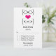 Placa de Resposta de Casamento de Óculos Quirky e Geeky Chic apresentando um coração rosa brilhante flanqueado por dois pares de óculos geeks, um par de manly e um par feminino representando o noivo e a noiva. Esta carta RSVP ofuscada, mas sofisticada, é perfeita para o seu casamento nerd! Fácil de personalizar, basta adicionar os detalhes do seu grande dia nos campos de texto fornecidos. Clique no botão "Personalizar a TI" para encontrar opções adicionais de personalização.
