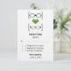 Placa de Resposta de Casamento de Óculos Quirky e Geeky Chic apresentando um coração verde flanqueado por dois pares de óculos geeks, um par de manly e um par feminino representando o noivo e a noiva. Esta carta RSVP ofuscada, mas sofisticada, é perfeita para o seu casamento nerd! Fácil de personalizar, basta adicionar os detalhes do seu grande dia nos campos de texto fornecidos. Clique no botão "Personalizar a TI" para encontrar opções adicionais de personalização.