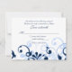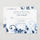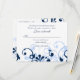A cor do texto e do plano de fundo neste cartão de resposta de casamento (rsvp) azul, azul pálido e branco do marinho é totalmente personalizável. Para alterar o texto, use a opção personalizar. Para alterações mais abrangentes na placa, incluindo alterações na fonte, cor da fonte, cor do plano de fundo ou posicionamento do texto, use a opção personalizar. Este é um cartão de resposta elegante para um casamento de primavera ou verão. Embora atualmente personalizado para um casamento, este cartão de resposta também funcionaria bem para uma variedade de outras ocasiões especiais. Esta placa está atualmente definida como impressão em papel branco de gelo metálico, mas também se parece muito bem com qualquer outro tipo de papel. Poderá também alterar a redação deste cartão para o tornar um cartão de direção, de recepção e/ou de alojamento.