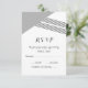 Placa RSVP de Casamento Geométrico de Stripe Moderna e moderna com triângulo de cinza e sotaque de stripteza fina. Este simples e elegante cartão de resposta está configurado para ser facilmente personalizado com as suas informações de casamento. Localize mais opções de personalização clicando em Personalizar.
